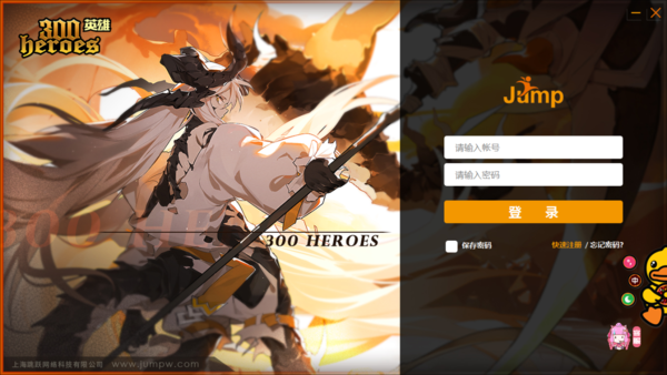第八步,300英雄程序安装成功后,软件就会自动弹出300英雄的登录界面,此时我们输入账号密码进行登录,或者是先注册账号密码再进行登录,就可以开始玩游戏了。