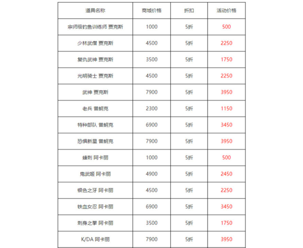 活动时间从11号到8号,足足有八天时间让你挑,可以慢慢挑了,可别挑花了眼哟。其实对于小编来说,挑哪款怎么挑最主要的还是取决于钱包里还有没有剩,双十一真是费钱呀。废话少说,还是先来看一下都有哪些皮肤打五折。