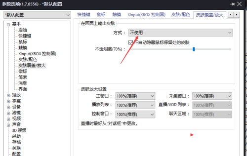第四步:进入到选项界面中,点击皮肤覆盖放大(如图所示)。
