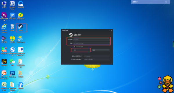 第一步,在电脑上找到steam软件,然后双击打开,接着输入自己的账号密码进行登录。