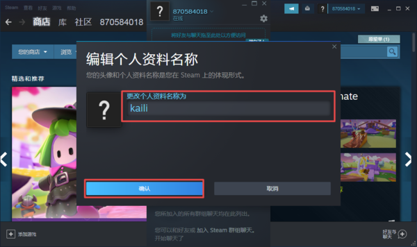 首先要告诉大家的是,糖豆人游戏是无法在游戏内改名字的。但是,因为糖豆人是在steam游戏平台上玩的,所以我们只能通过更改steam的昵称来进行糖豆人名字的更改。
