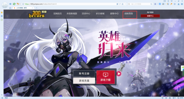 想要查询300英雄的团分的话,其实在300英雄游戏的官网中就能够进行查看,因为它开放了战绩查询系统。第一步,在电脑上搜索300英雄,进入到游戏的官网当中。