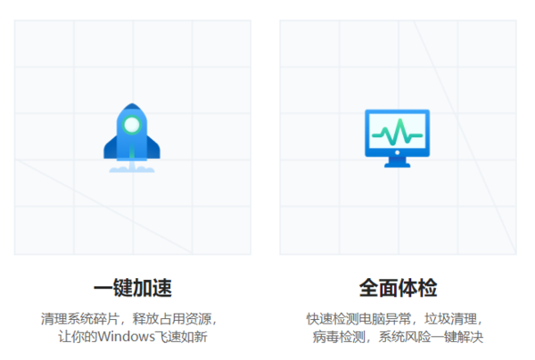 2、简洁流畅:各种功能整合到一下按钮中,只需轻轻一按,即可让微软电脑管家全面扫描。