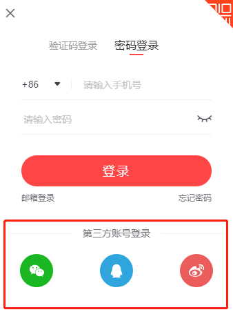 3、第三方账号登录,我们亦可选择使用第三方账号(微信、QQ、微博)进行登录,这样登录就可以让我们省去额外注册账号,从而避免麻烦。