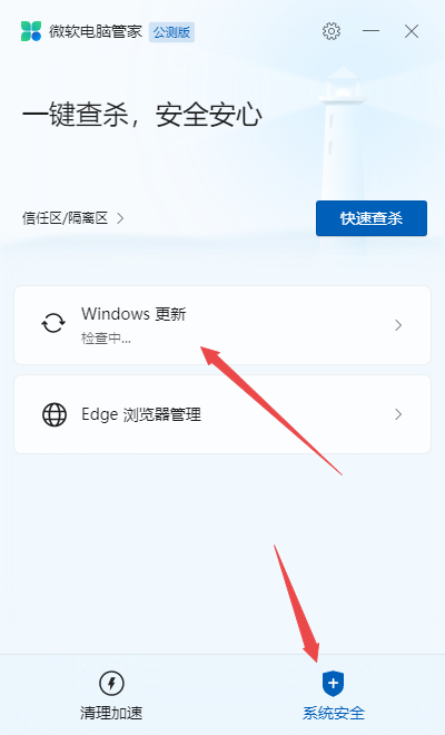 根据小编在网上搜集到的资料来看,具有Windows系统更新功能的电脑防护软件是微软电脑管家,它是一款设计的非常简洁流畅的电脑防护功能,而在电脑防护的功能基础上,微软电脑管家还具备Windows系统更新的功能,让我们可以在查杀电脑的同时,检测Windows系统是否有更新。