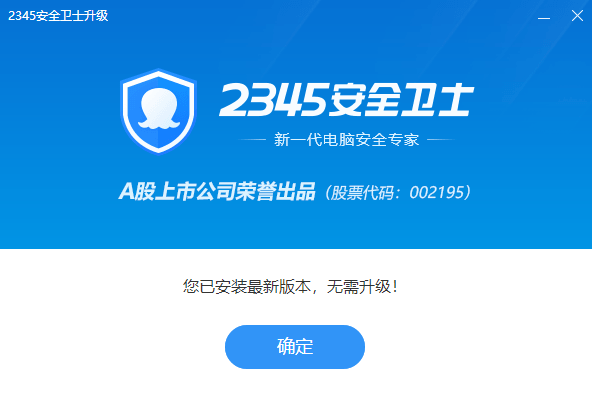 接下来,2345安全卫士会用很短的时间进行升级检查,如果尚未发现新版本,就会提示我们“您已安装最新版本,无需升级”;反之,我们即可在此界面将2345安全卫士升级到最新版本。