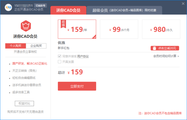 五、最后开通迷你CAD会员,就可以将dwg文件转换为pdf了。