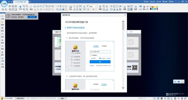 根据小编的收集到的资料,以及自己的实际使用经验来看,目前登录超便捷的CAD制图软件是CAD迷你画图软件,为什么是这款软件呢?因为,CAD迷你画图软件在新发布的2022R4版本当中,新增加了手机验证码的登录方式,有了这个登录方式后,我们就可以非常便捷而又快速的登录到CAD制图软件当中了,再也不怕自己记不住登录的用户名或者是密码了,直接一键手机号登录,便捷更快速。