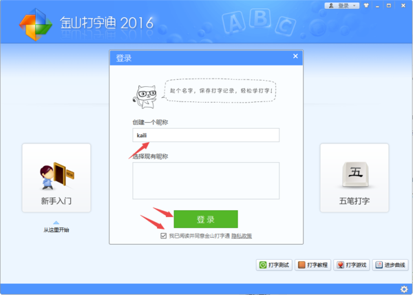 2、接着,如果你没有进行登录的话,软件会提示登录,此时我们在【创建一个昵称】处输入一个昵称,然后勾选相关的协议,点击【登录】按钮。