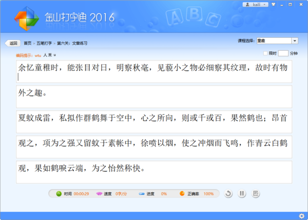 7、最后,软件就会打开一篇文章让我们进行练习了,切换到五笔输入法当中开始练习五笔打字即可。