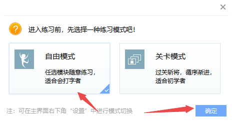 4、紧接着,软件会弹出两种模式的选项,一个是【自由模式】,另一个则是【关卡模式】。