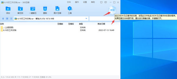 5、最后我们等待360压缩软件为压缩包扫描木马完成即可。