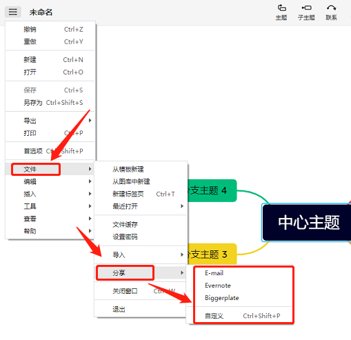 在XMIND软件中,我们如果整理制作好一份脑图文件,之后同样可以通过“分享”功能将文件发送给他人,然后就可以编辑了。
