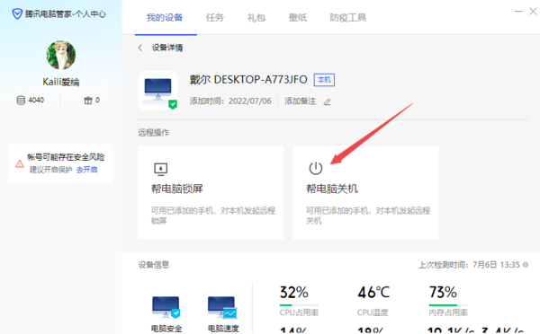 根据小编以往的使用经验总结,能够帮助电脑关机的电脑防护软件为腾讯电脑管家,因为腾讯电脑管家软件在V15版本中带来了设备管理的新功能,有了这个新功能之后,我们不仅可以帮助电脑关机,还可以帮助电脑锁屏呢。