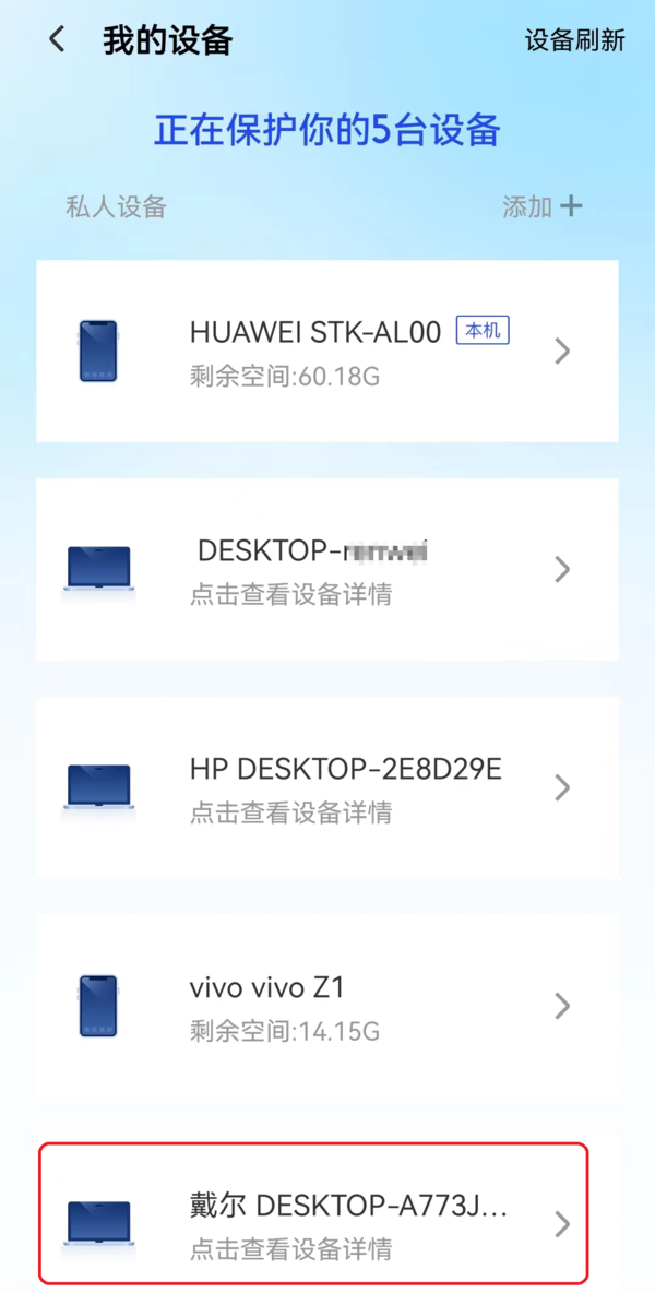6.?然后在我的设备界面中,找到想要帮电脑远程管家的设备,并点击进入。