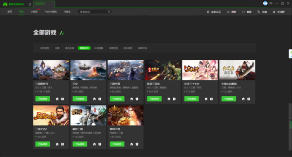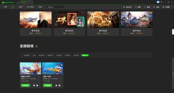 在PC版爱奇艺软件的爱奇艺游戏中心当中,我们可以看到,爱奇艺游戏中心中一共有3个类型的游戏能够供我们来玩耍,包括页游、Flash小游戏以及斗地主这三个类型的游戏。其中页游这个类型的游戏中,我们可以玩耍到的游戏类型有角色扮演类的游戏、策略类的游戏,休闲益智类的游戏,体育竞速类的游戏以及棋牌对战类的游戏。