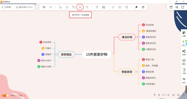 介绍完了GitMind的概括功能的位置后,那么GitMind中怎么给思维导图中的某个节点添加概括呢?继续往下看吧。