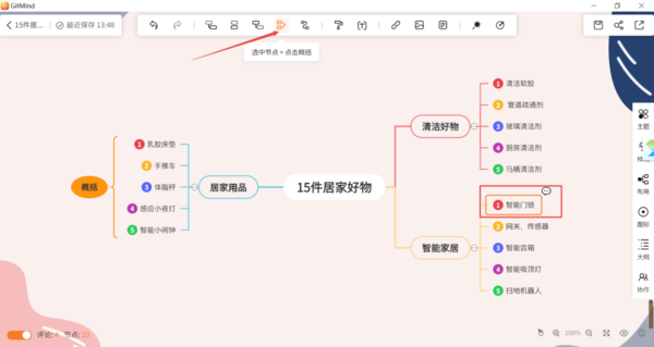 GitMind怎么给思维导图中的某个节点添加概括