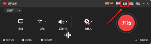 小编肯定的告诉大家,傲软录屏中是有在线客服咨询功能的,我们可以通过这个功能来和客服咨询一些我们使用软件中遇到的问题,打开傲软录屏后我们在右上角能找到一个“客服”按钮。