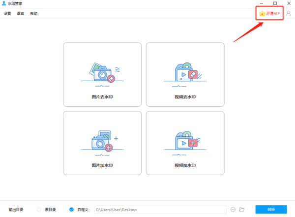 在电脑中打开水印管家之后在软件的右上角有个“开通vip”选项,点击后就可以进入到会员开通的页面。