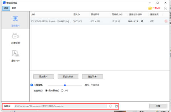 最后选择需要保存的路径,修改完成后点击右下角的“压缩”,等待图片压缩完成后,就可以到存储路径位置找到并使用了。