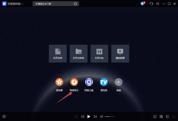 1、打开PC版恒星播放器软件,然后在界面的底部位置,找到【网络音乐】插件功能,并点击进入。