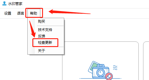 仍然是在刚刚上方提到的三个选项中点击“帮助”,在下拉菜单中选择“检查更新”,这时候会自动检测水印关键当前版本是否为最新版本,如果不是,接着按照提示更新就可以。