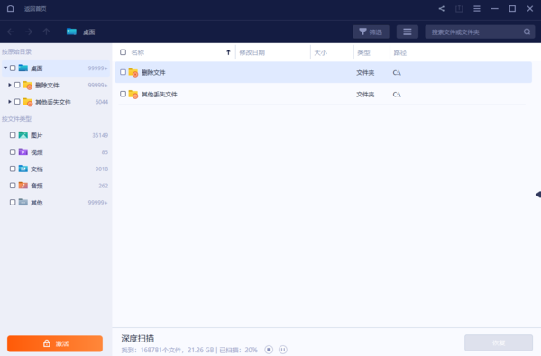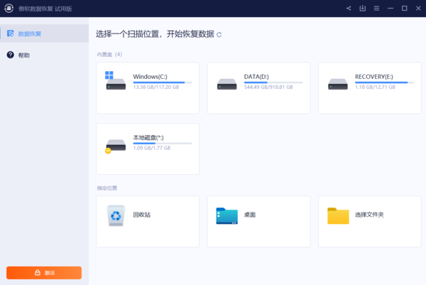 傲软数据恢复是一款数据恢复工具,像是我们的电脑、?硬盘、U盘或是回收站由于误删,文件进行了格式化,或是电脑系统崩溃等原因导致的数据丢失,都可以用这个软件将数据文件恢复,操作简单,能够在最短的时间里将删除的数据文件恢复到电脑中。