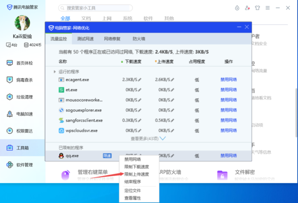 以上,就是财神爷站小编为大家总结的关于腾讯电脑管家解除软件的网络速度限制,以及设置软件网络速度限制的具体方法介绍了。