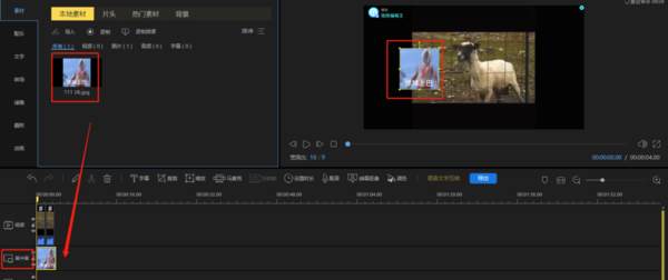 之后可以将图片素材拖拽到下方的“画中画”轨道中,这时右侧的画面调整界面中就会出现刚刚添加好的图片了,调整大小和位置后,这张图片素材就添加到我们的视频里面来了。