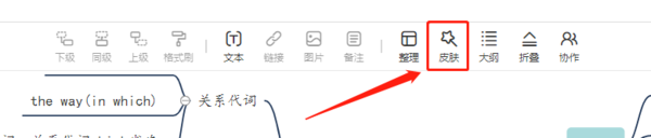 在爱莫脑图中如果想要换思维导图的皮肤底图,可以直接在思维导图的上方找到点击“皮肤”,这时候就会有新的皮肤样式出现了,如果对更换的皮肤样式不满意,继续点击“皮肤”就可以接着去更换其它样式的皮肤了。