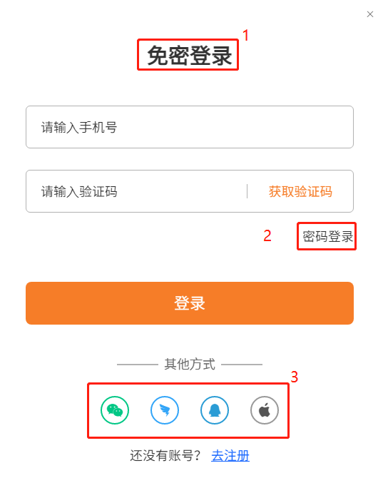 2、免密登录。现在,大家用的软件、设备越来越多,以至于要记住的密码可能也会越来越多,而贴心的Gitmind官方开设了免密登录方式,只要我们有手机号,且可以获取验证码,即可通过手机号+验证码的方式实现免密登录。