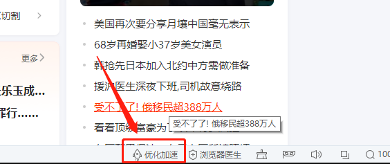 首先可以点击浏览器右下方的“优化加速”,点击这个按钮之后直接就可以给当前的页面加速了。