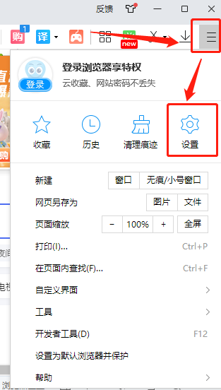 首先打开2345加速浏览器之后点击右上角的三条横线的按钮,然后在出现的选项中点击上方的“设置”。