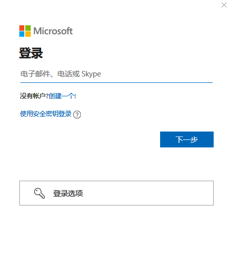 3、之后,我们需要先输入自己的微软账号,这可能是你的邮箱号,也可能是手机号。输入完微软账号后,点击【下一步】。