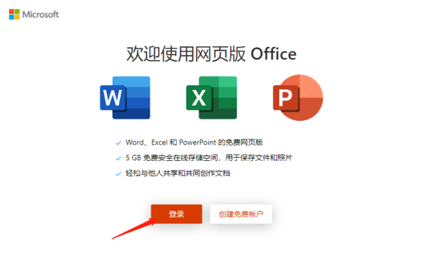 1、我们来到Web?Office?2019的界面,点击下方的【登录】按钮进入登录界面。