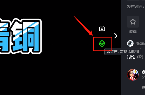 我们在看视频的时候会看到右侧会有两个按钮,一个是截屏,另一个是爱奇艺独家的AI识别功能。