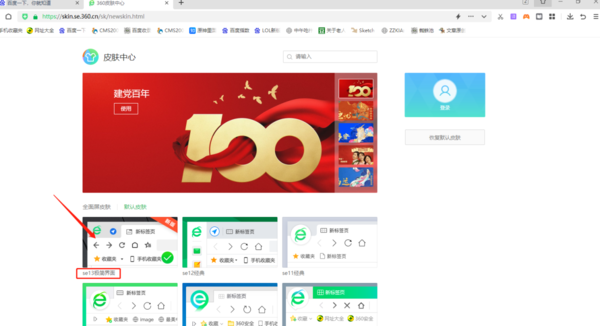 点击右上角的“皮肤中心”,进入到皮肤中心界面后,在皮肤列表中去找到带有“极简模式”字样的皮肤,点击皮肤样式的缩略图就可以换浏览器皮肤了,皮肤换好之后当前的状态就是极简模式了。