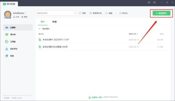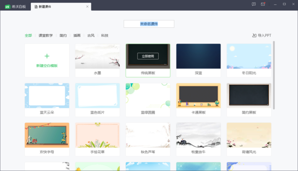 希沃白板的课件制作方法十分简单,双击打开希沃白板5后,在软件的右上角附近可以看到“新建课件”,点击就可以开始制作课件了。希沃白板5中内置了很多的模板,功能也是十分容易上手的。