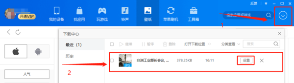 找到并下载好想要使用的图片后,点击页面右上角的“下载”图标,在弹出的下载中心页面中,可以查看已下载的所有壁纸图片。点击对应壁纸选项右侧的“设置”键,就能在手机上设置应用该壁纸了。