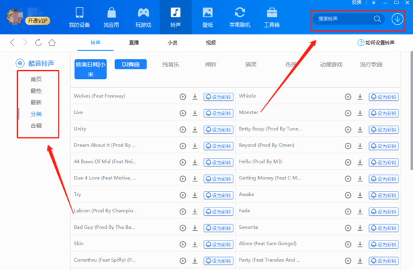 各位小伙伴们,现在大家都使用的是什么手机铃声呢?随着智能手机的不断发展和普及,设置手机铃声,已经不是一件很难的事情了。小编还记得没有智能手机的时代,想要设置更改手机的铃声,除了手机上预设好的铃声之外,下载铃声很多都是需要付费的。而现在如果想要使用歌曲作为铃声的话,还是会有不方便的地方,因此很多的手机助手类软件都提供有下载铃声的服务。那么,如果使用的是91手机助手,该在哪下载铃声呢?