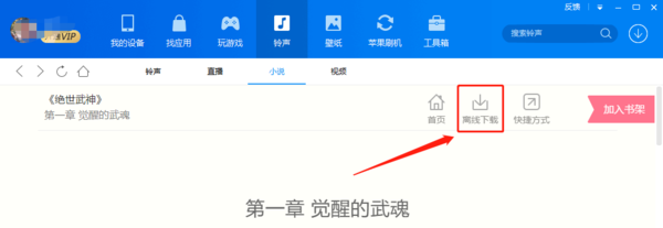 如果遇到感兴趣的小说,还可以在小说阅读界面,点击右上角的“离线下载”键将小说下载到手机上。