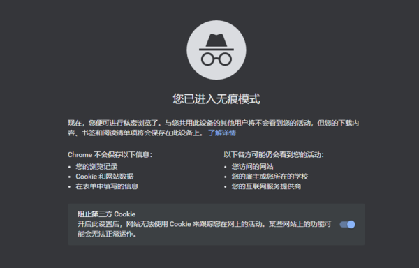 进入进入谷歌浏览器无痕窗口后,用户就能进行私密浏览,这样就不会在当前电脑上留下浏览历史记录,其他用户使用该设备时也不能看到相应的活动。不过如果下载了文件资料,或者阅读书籍的话,还是会有痕迹保存在设备上。