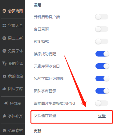 跳转到设置中心页面后,点击“文件存储设置”选项中的“设置”字样,就能在弹出窗口中,查看保存位置路径了。一般来说,iFonts字体助手的保存位置,应该是与安装位置一致的,因此在安装的时候最好是选择系统盘之外的位置。