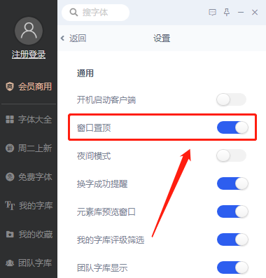 使用过iFonts字体助手的小伙伴,应该都注意到了,iFonts字体助手主页面总是显示在最上面,会影响用户查看其他文件窗口。想要修改关闭该功能的话,同样是在设置页面,取消勾选“窗口置顶”功能就可以了。