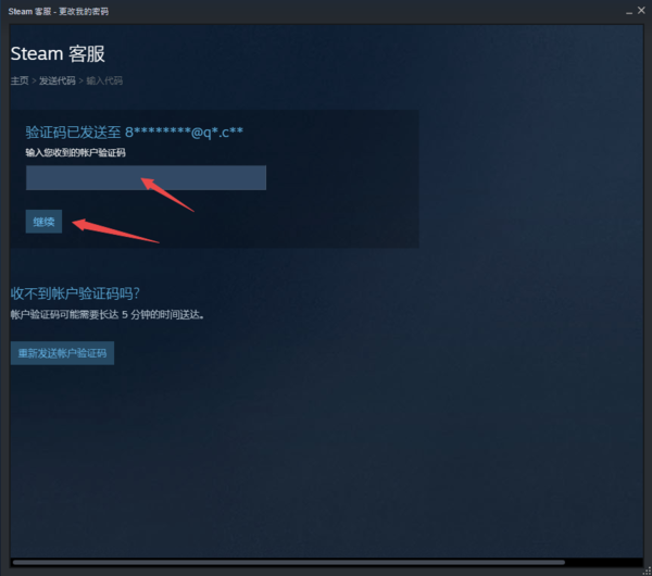 4、接着我们登录到自己的相关邮箱当中,然后看到发送过来的验证码,并输入到刚刚的更改密码的窗口当中,然后点击【继续】按钮。
