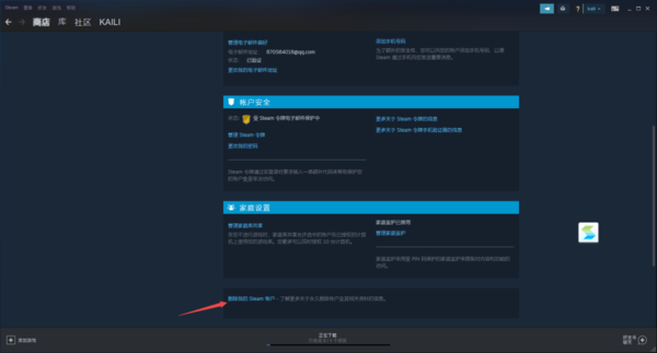 5、然后将页面滑动到最下方,找到【删除我的steam帐户】选项,并点击它。