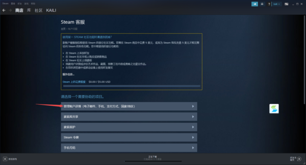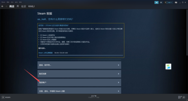 3、接着在steam客服界面中,找到【我的帐户】选项,并点击进入。