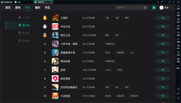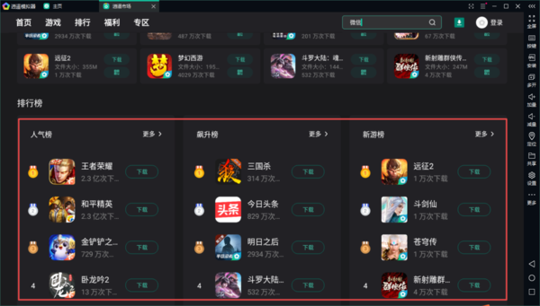 第五步,再或者是在逍遥市场的排行界面中,找到自己想要下载的软件或游戏,最后点击进行下载就可以了。