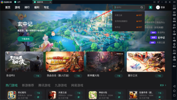 第四步,当然了,我们也可以在逍遥市场的主界面中,找到想要下载的游戏或软件。